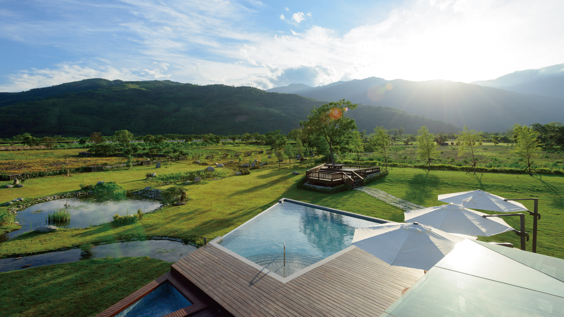 坐落於花東縱谷間山與山的低處,緩緩感受純淨溫泉、清涼泳池、寬廣草原。一切的悠然自頤,在洄瀾的蒼翠中